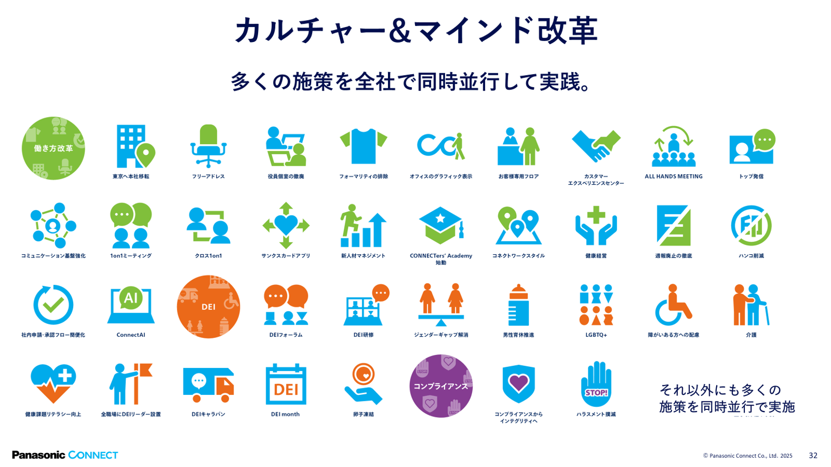 同社は、従来の「縦割りで重たいカルチャー」から「フラットで俊敏なカルチャー」への転換を図ることで、組織の競争力を強化している。心理的安全性の確保や多様性の尊重、社員の行動指針を明確化するなどして、社員が安心してチャレンジできる環境を整備した。この改革は、単なる働き方の改善にとどまらず、社員のモチベーションを高め、組織全体の生産性と創造性を向上させる効果を生んだ。